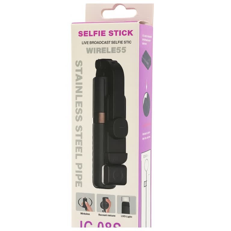 عصا السيلفي JC-08S تمنحك تجربة تصوير مريحة ومتعددة الوظائف بفضل تصميمها القابل للتمدد، والتحكم اللاسلكي، وإمكانية الدوران 360°، إضافة إلى إضاءة LED لصور أوضح وأجمل. مثالية للبث المباشر، الفلوقات، والسيلفي. 🌟🎥