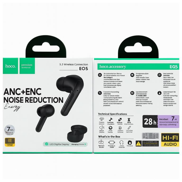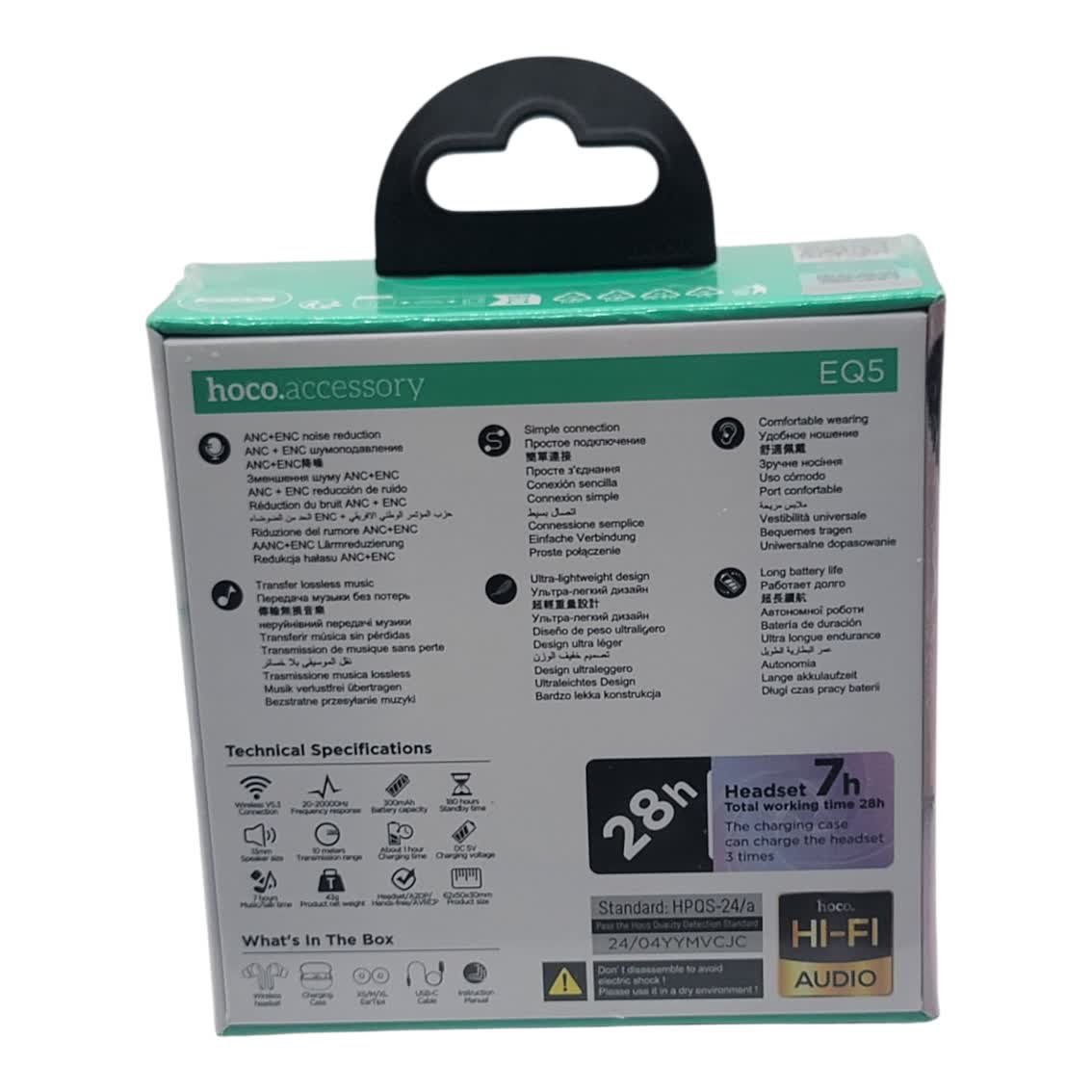 🎧 Hoco Kitman EQ5 سماعات بلوتوث قوية بتقنية ANC لإلغاء الضوضاء 🔇، وصوت ستيريو واضح مع باس عميق 🔊، بطارية طويلة بالشحن Type-C ⚡، ولمس ذكي للتحكم ✋، تصميم مريح وخفيف 🪶 ومناسبة للمكالمات بفضل ENC 📞.